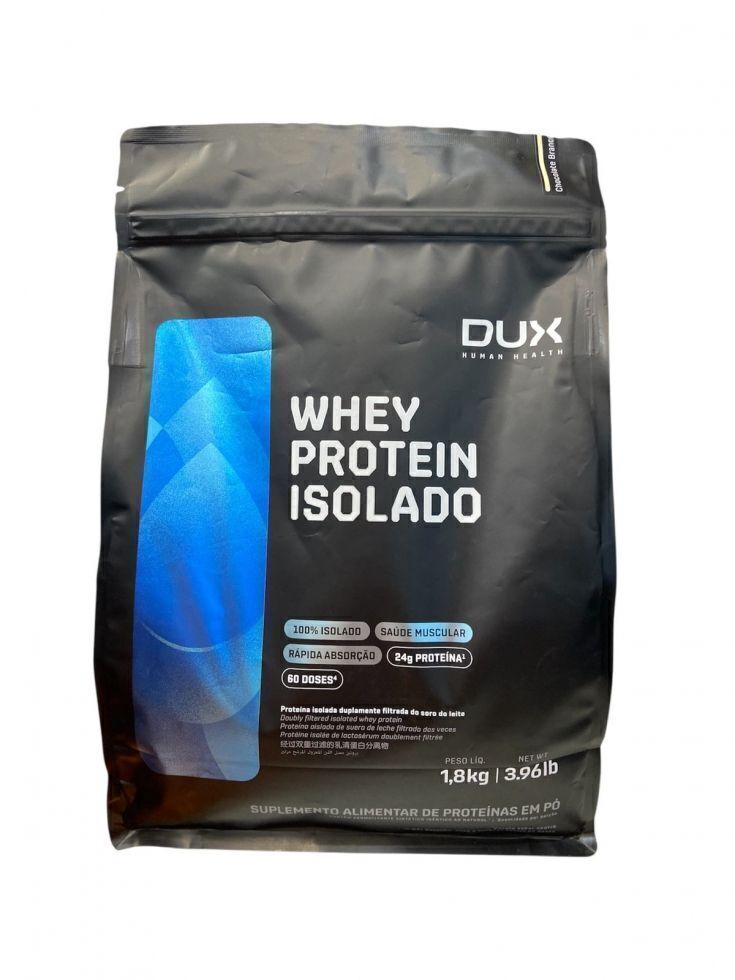 WHEY PROTEIN ISOLADO (1,8Kg) - DUX NUTRITION O Whey Protein Isolado Dux Nutrition possui baixo teor de gorduras e carboidratos, sendo ideal para construção e recuperação muscular sem perda de definição, como um snack fit prático ou sem culpa em suas receitas. Uma proteína 100% pura, duplamente filtrada, sem adição de outro tipo de Whey ou de proteínas inferiores. Se há um nutriente indispensável, é a proteína. Ela é feita de aminoácidos, que são os blocos de construção do nosso corpo. A proteína do soro do leite, em inglês “Whey Protein”, é uma das fontes de aminoácidos de melhor absorção, maior até que o frango ou peixe. Isso torna o Whey uma forma conveniente de ingerir proteína, melhorando a saúde, o bem-estar e os resultados dos treinos. BENEFÍCIOS: * Matéria-prima premium importada, obtida através do processo de extração de microfiltragem, sem renunciar do sabor real das nossas proteínas;* Aporte completo de aminoácidos: 6,2g de BCAAs; 4,7g de glutamina e 2,9g de leucina, por dose;* 24g de proteína;* Disponível em versões sem adoçantes artificiais, 100% naturais;* O nome diz tudo: Whey Protein Isolado 100% puro, com transparência total, do nome do produto à lista de ingredientes;* Não contém goma xantana, complexos vitamínicos à base de maltodextrina, espessantes, estabilizantes, conservantes ou qualquer outro ingrediente inferior;* Proteína moderna, desenvolvida por especialistas para atletas de esportes de performance (bodybuilding, crossfit e artes marciais), pessoas que buscam uma proteína com baixa caloria (para snacks fit e receitas sem culpa) e pessoas que buscam uma proteína ultrapura de altíssima qualidade;* Contém corantes 100% naturais, sem ingredientes artificiais. Embalagem disponível: pote contendo suplemento na forma de pó. Sabores: Baunilha, Chocolate, Coco e Morango. Peso Líquido: 1,8Kg